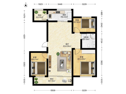 房屋戶型: 3 室2廳 1 廚1衛(wèi)
